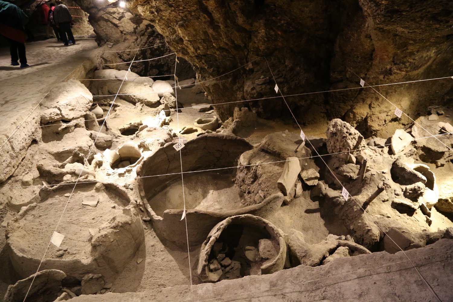 В пещере в отличном состоянии сохранились глиняные сосуды (карасы) с остатками вина, виноградных косточек, и инструменты виноделия.